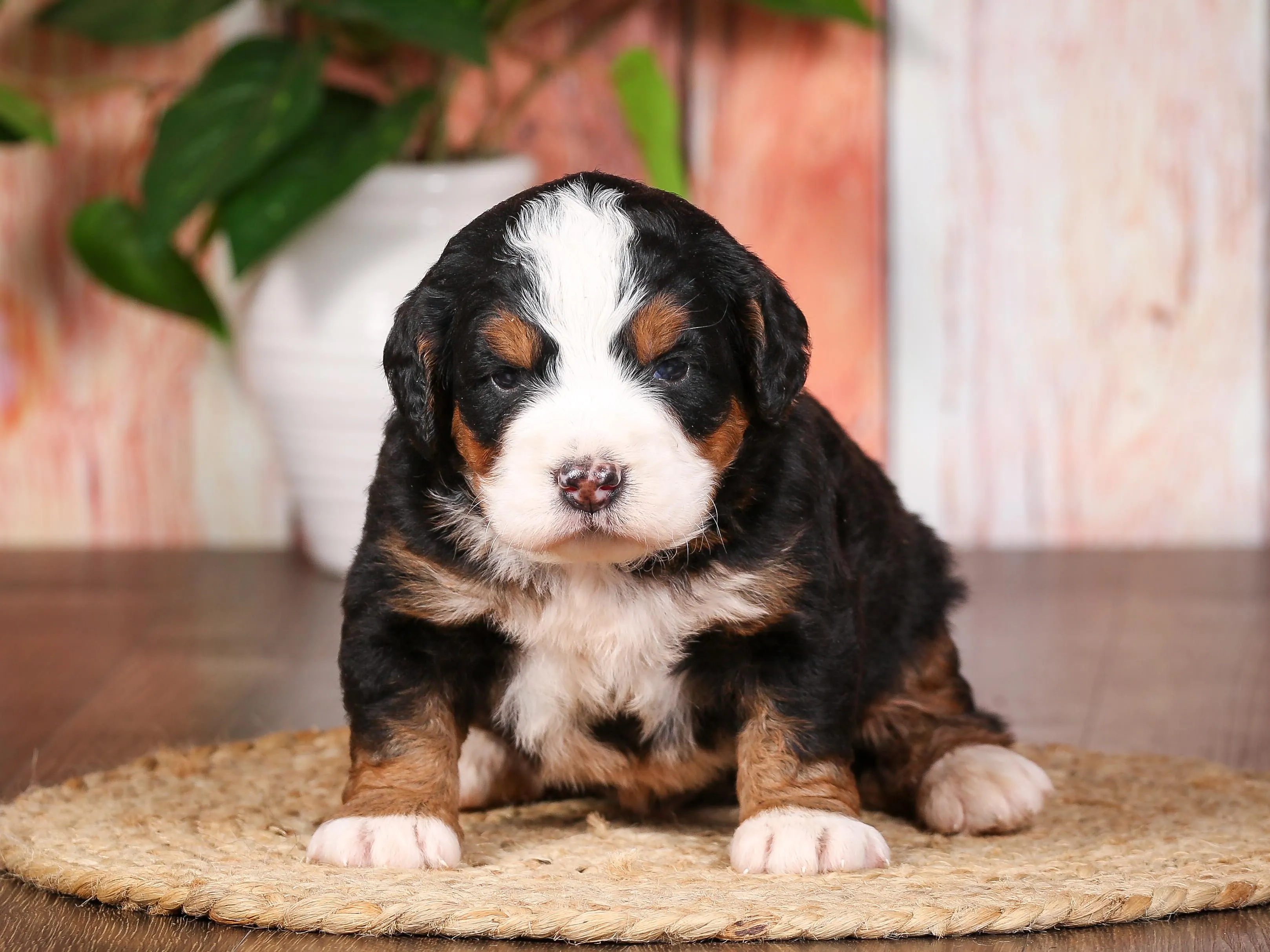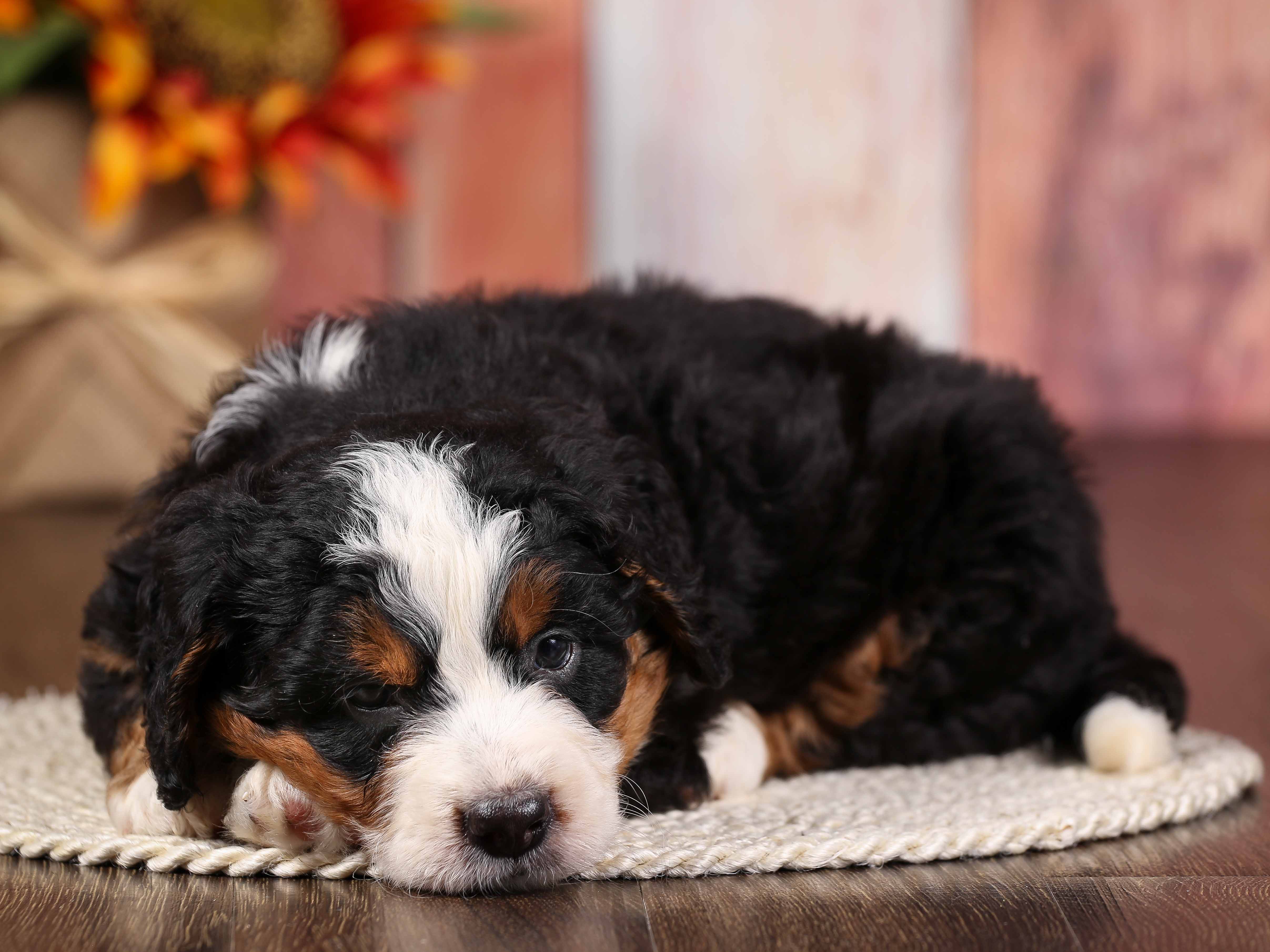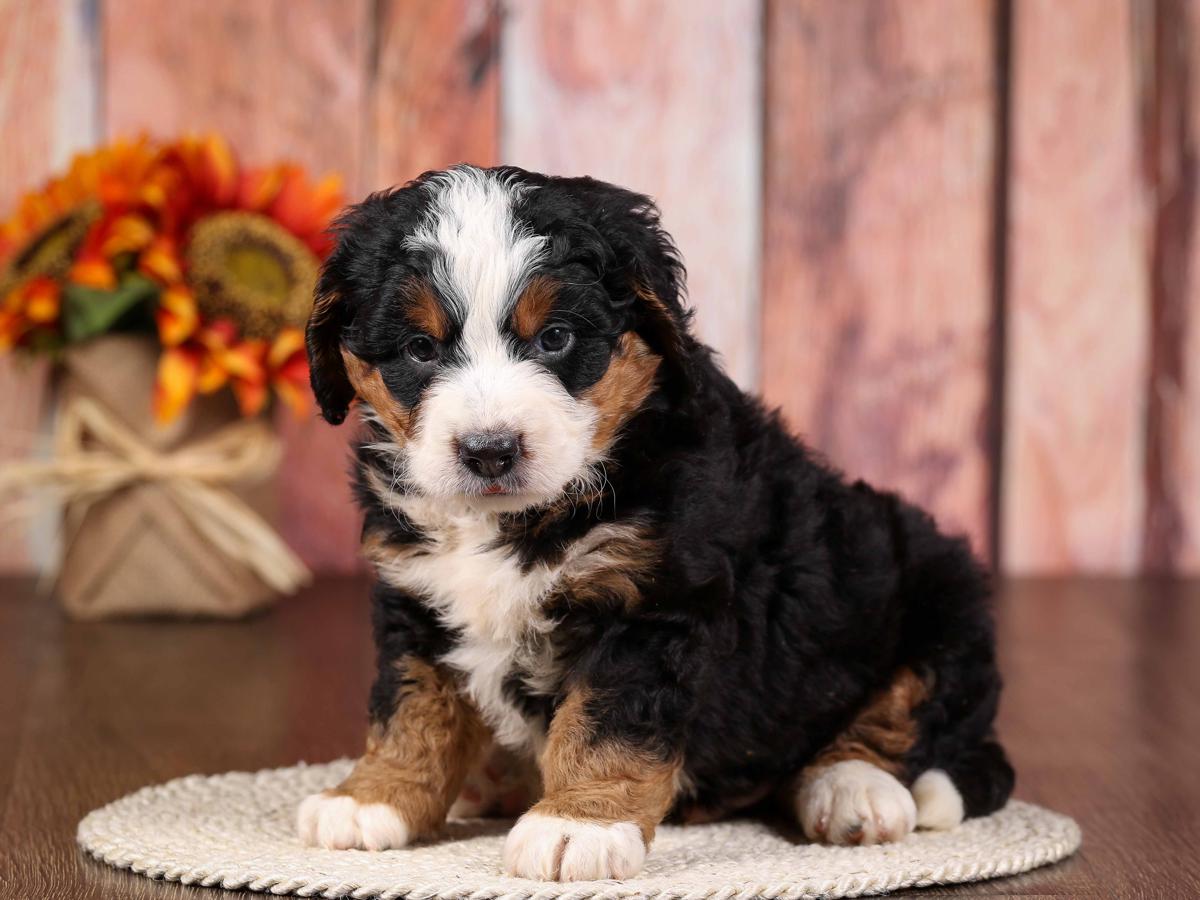 Bryan is a F1 Mini Bernedoodle born to & on August 4, 2025.
