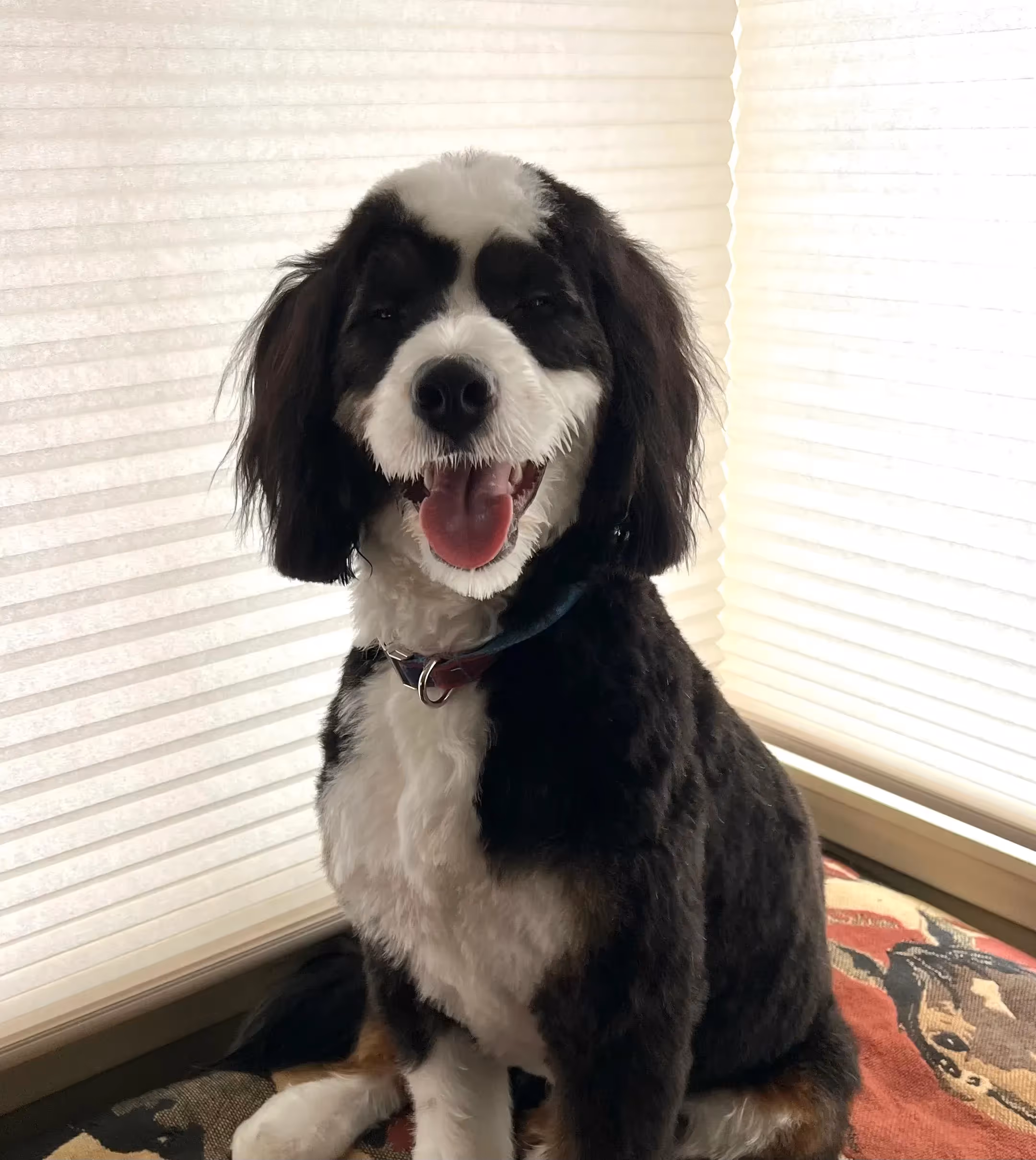 His disposition is sweet and hyper and always fun. He seems to be topping out at 43 lbs, which for us is perfect.🤩