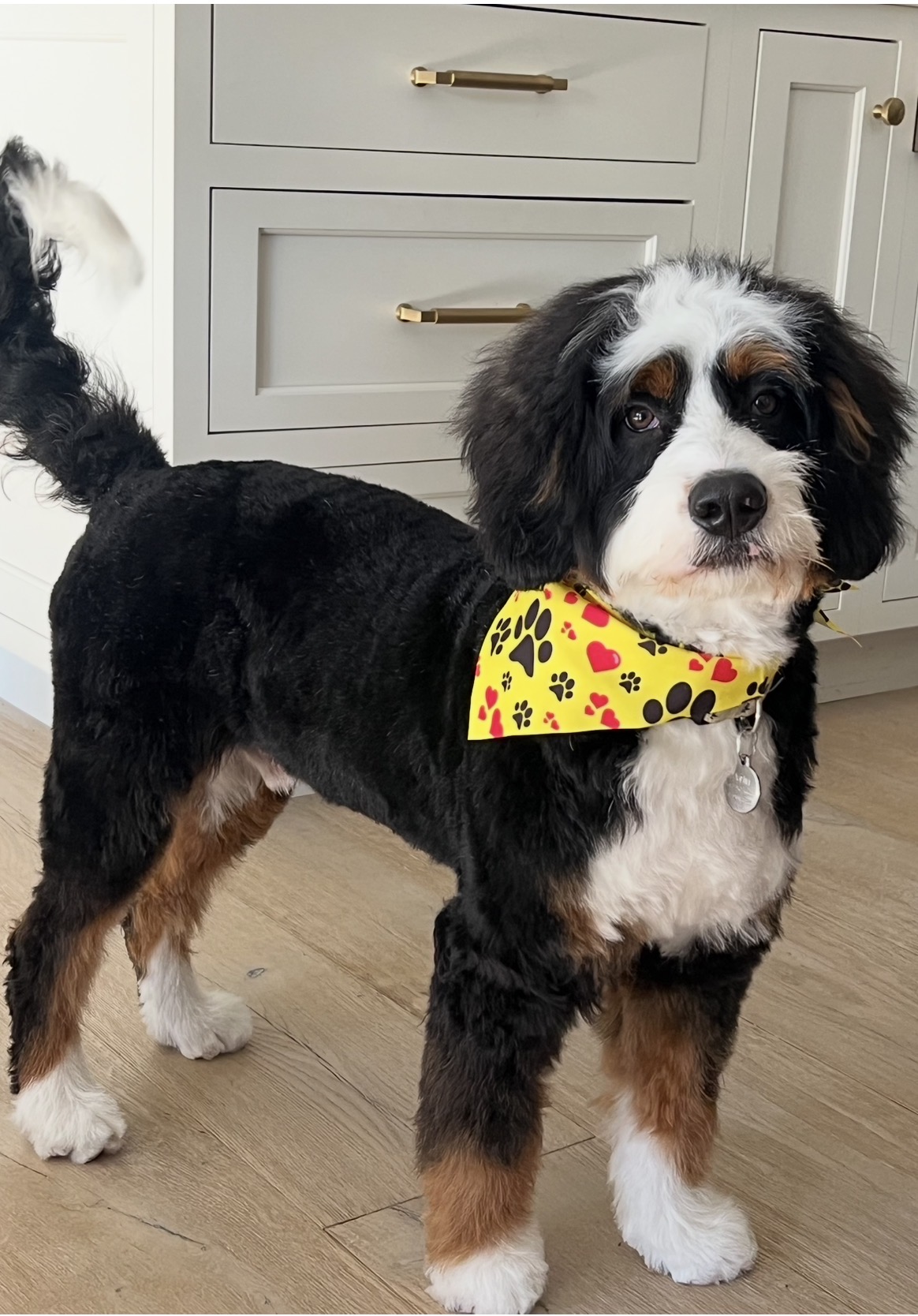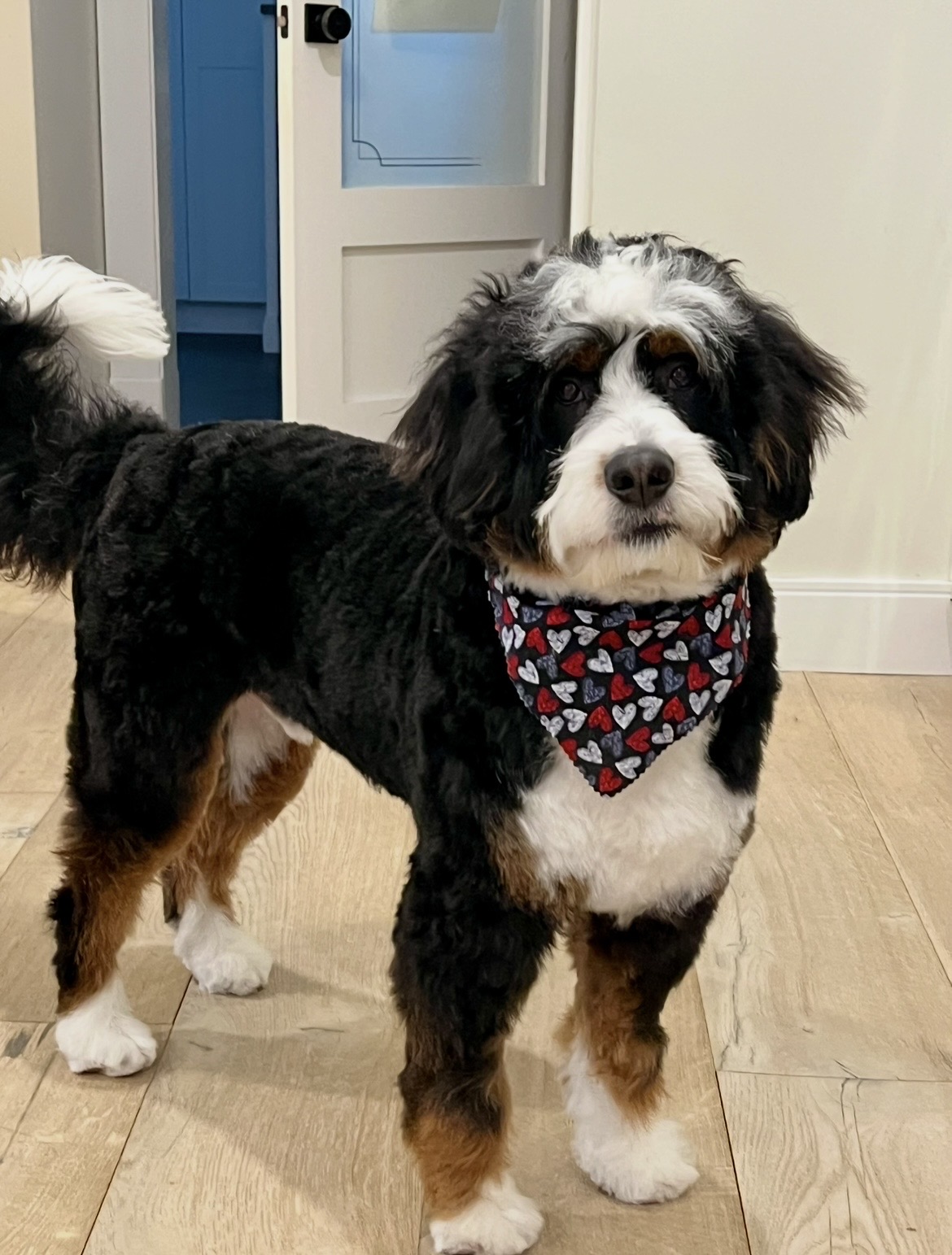 Marlin is a F1 Mini BernedoodleF1B Mini Bernedoodle born to & on April 1, 2025.