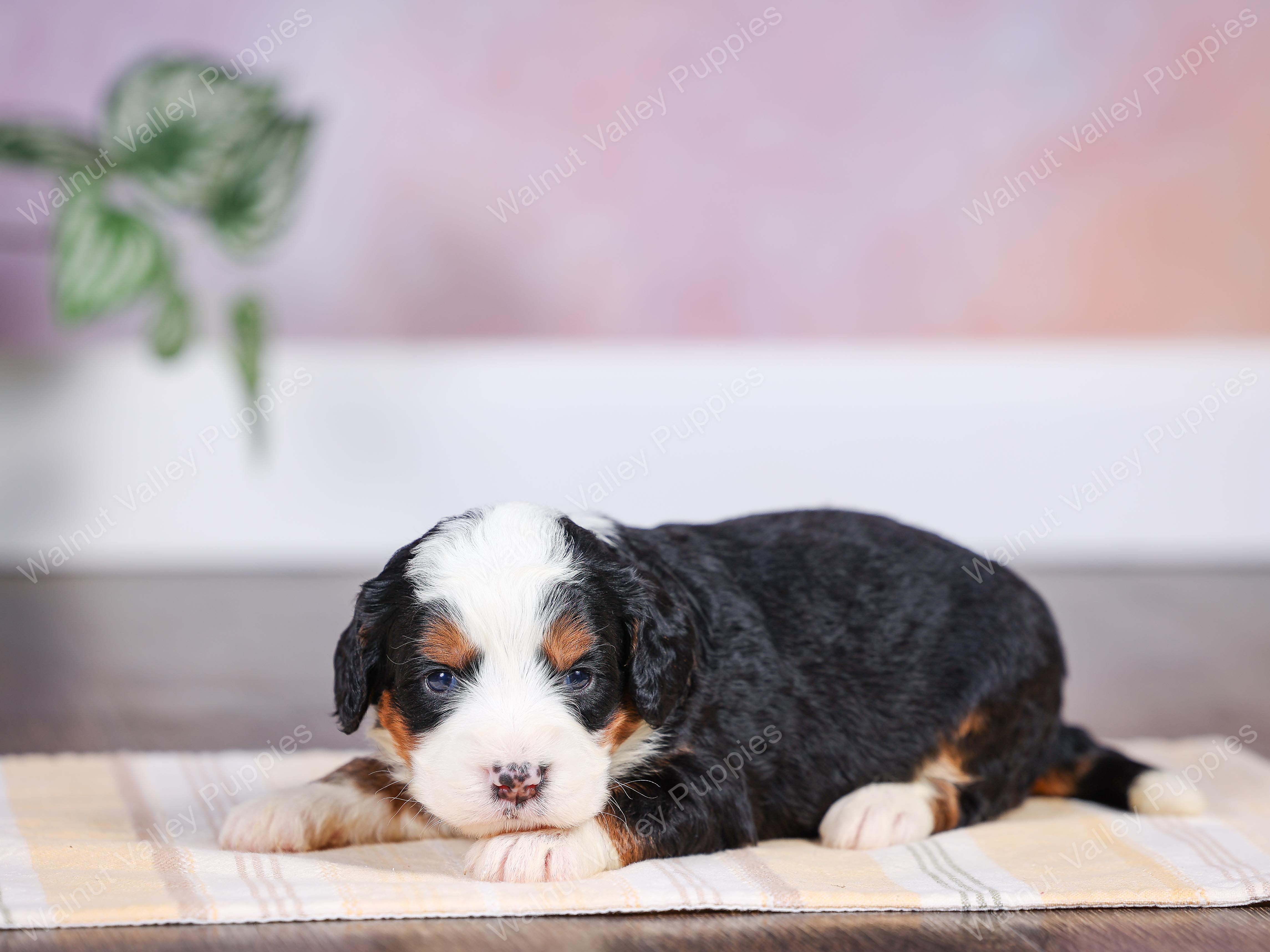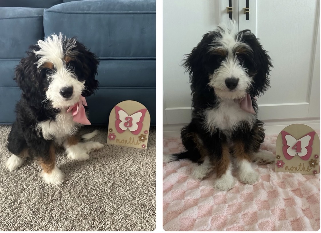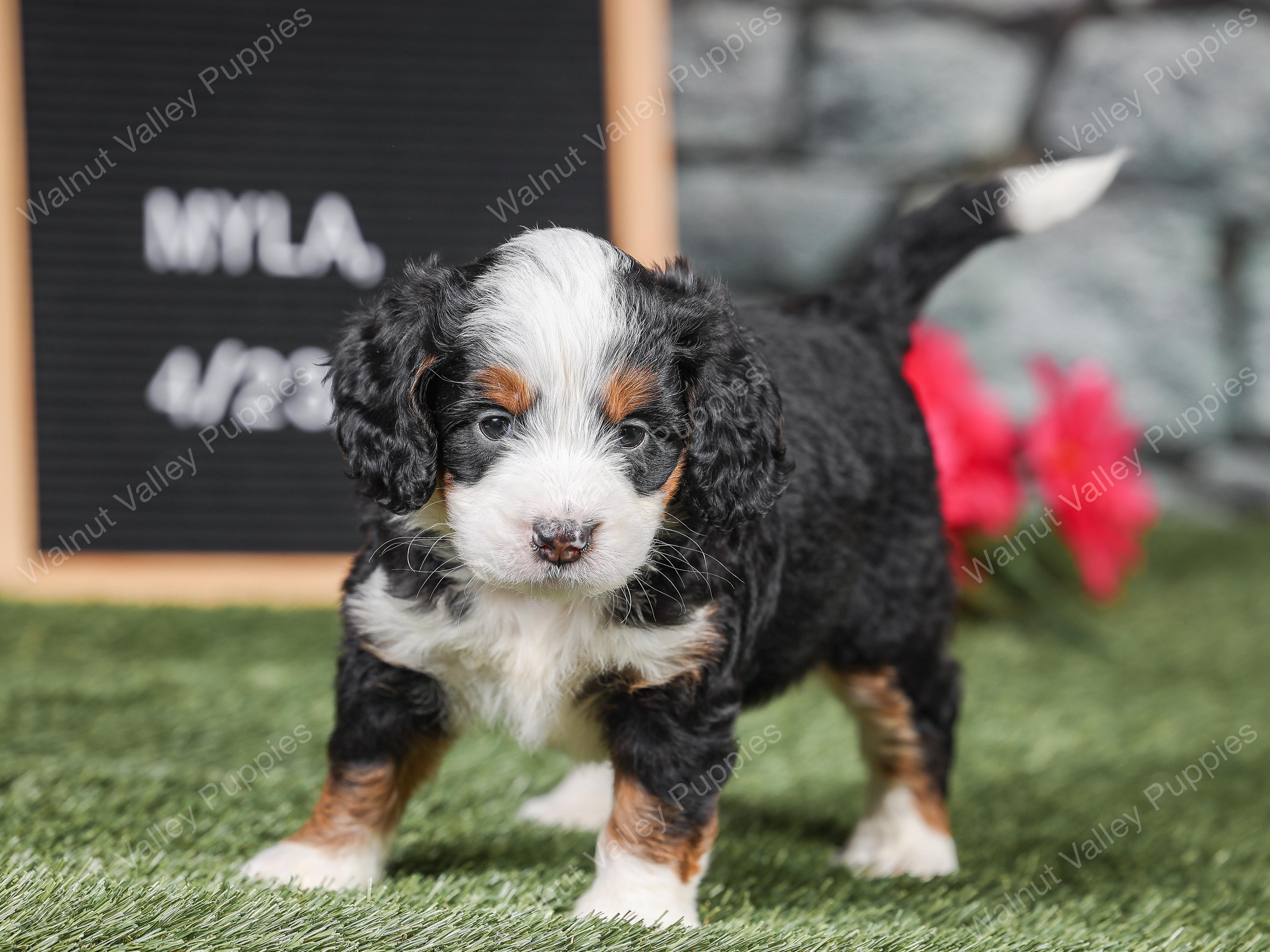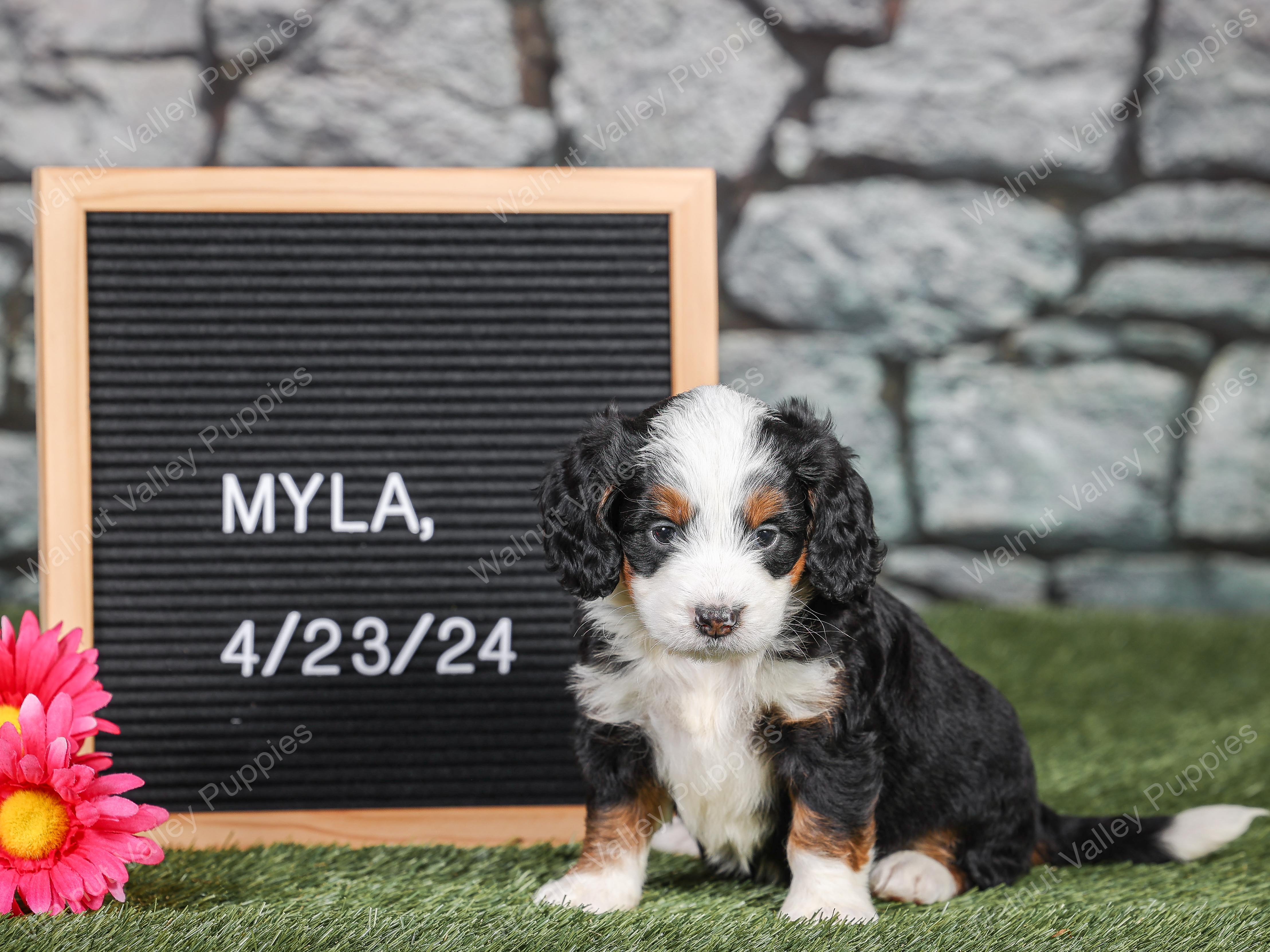 Myla is a F1 Mini BernedoodleF1B Mini Bernedoodle born to & on April 23, 0024.